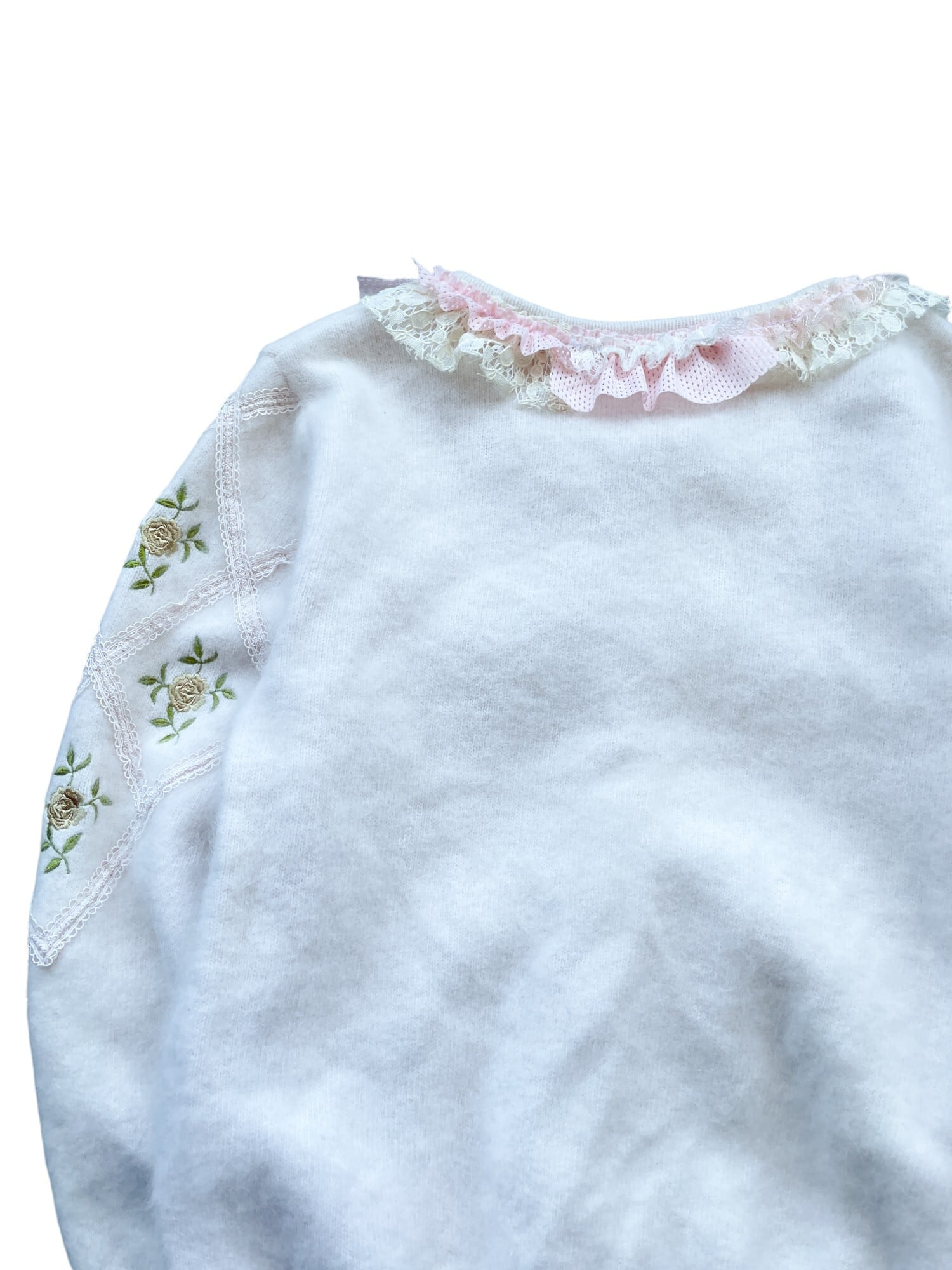 希少なアンゴラニットのカーディガンにフリルの装飾を施しました。