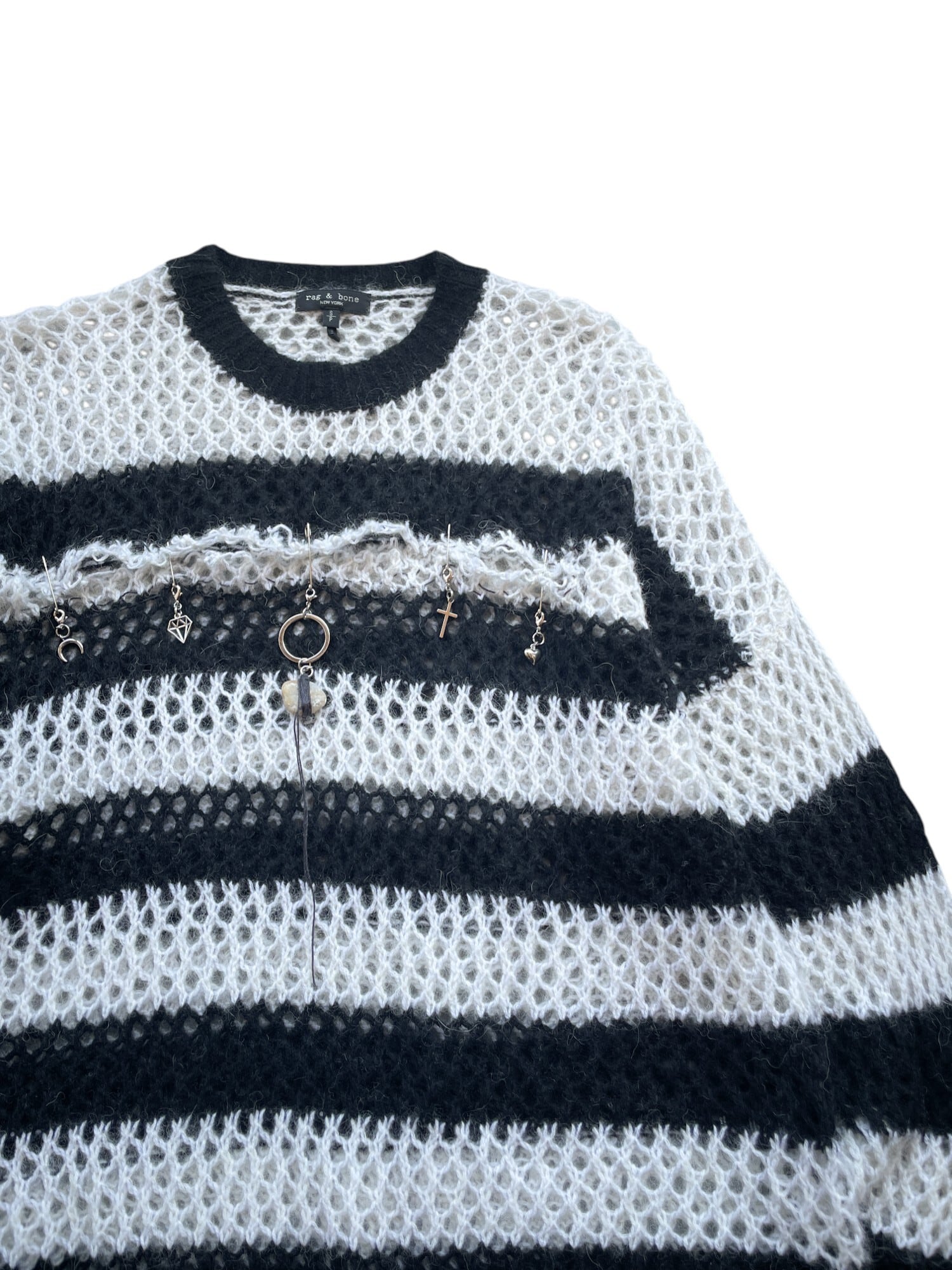 手作りのチャームは砂浜に流れ着いた材料を使っています、服と共に進んでいく経年劣化をお楽しみください。