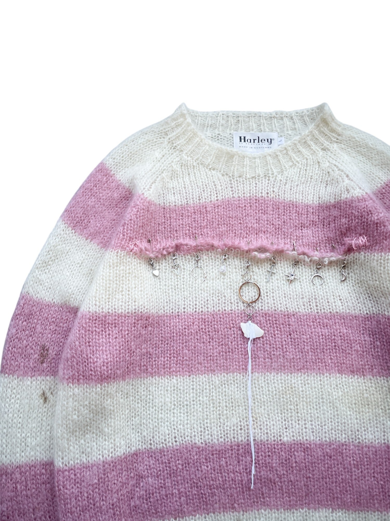 手作りのチャームは砂浜に流れ着いた材料を使っています、服と共に進んでいく経年劣化をお楽しみください。